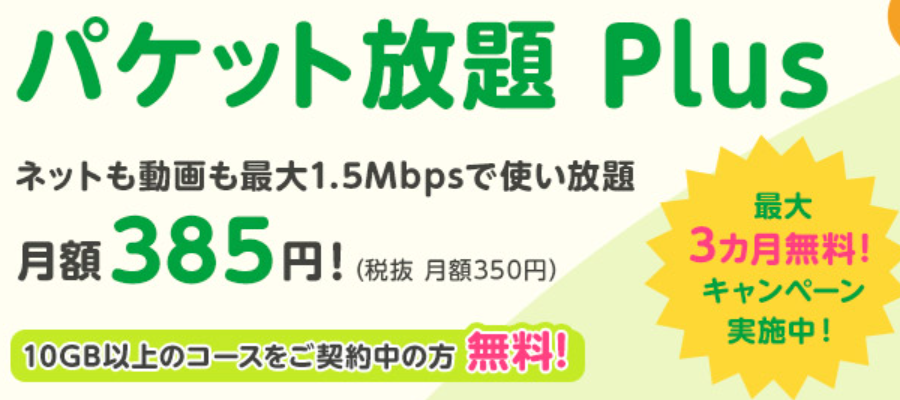 最大1.5Mbpsのデータ通信が使い放題になるサービスです。