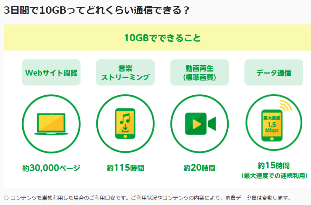 3日間で10GB以上利用時に制限があります。