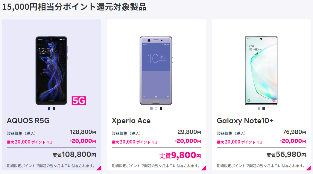 楽天モバイルのセットスマホ端末はこちら(一例)