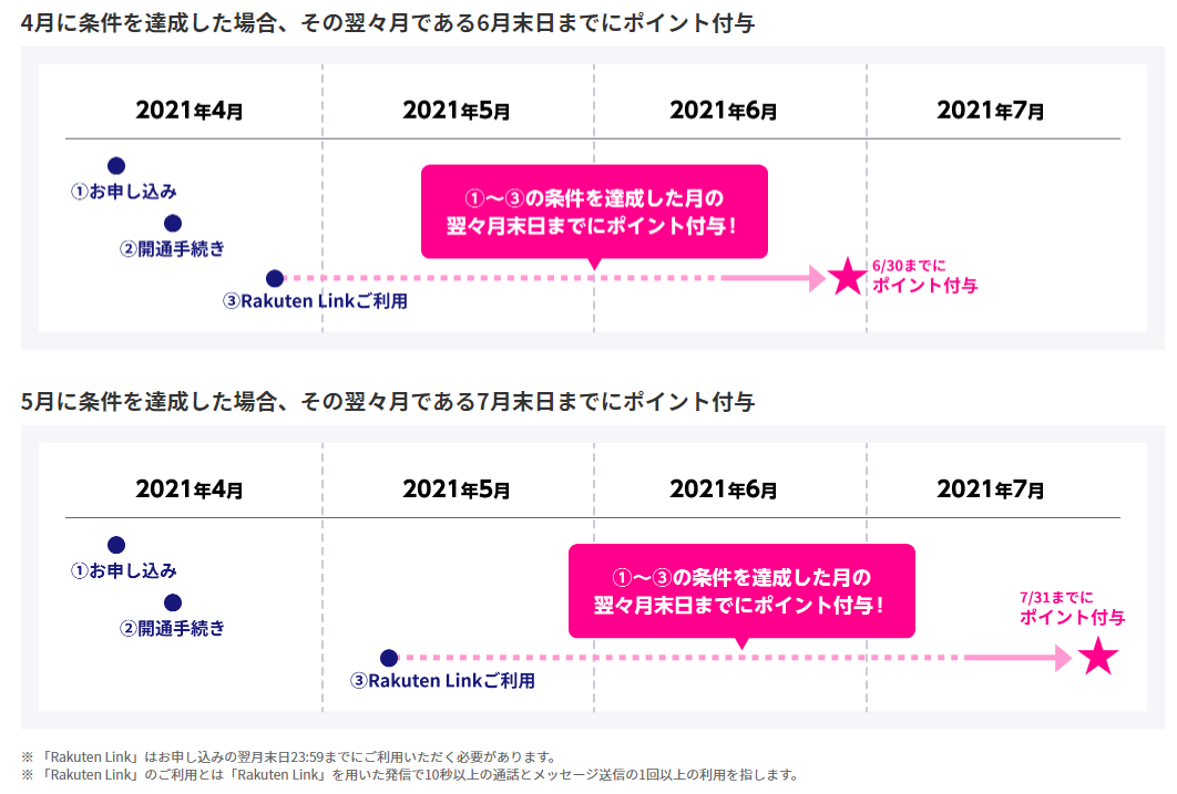 この図にあるように、おおよそ二か月後に楽天ポイントがもらえます。